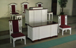 | Furniture Supply | Chancel sets, pulpit chairs, wooden stacking chairs, rails, and screens |